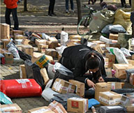 10.由系統(tǒng)生成每票貨物的標(biāo)簽,并粘貼到對(duì)應(yīng)的貨物外箱上,然后分區(qū)域擺放。